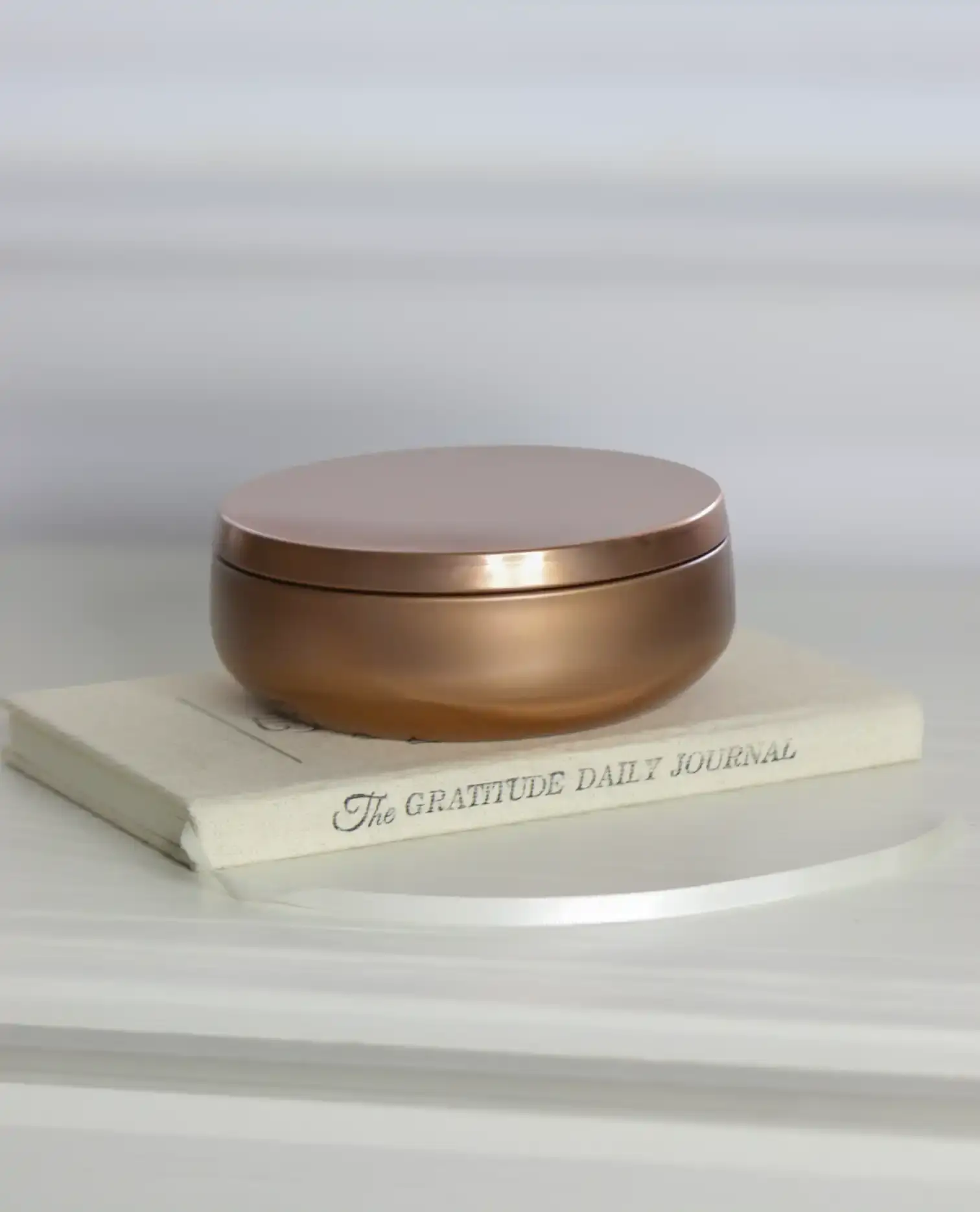 Our Copper Tin Soy Candle is ideal for those who value beauty and sustainability. Whether as a decorative piece or lit to fill your space with delightful fragrances, it brings elegance and charm to any room. It’s also a wonderful gift choice, blending artistic design with eco-friendly materials.