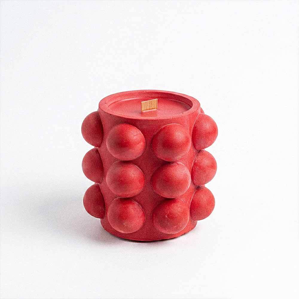This hand-poured coconut wax candle burns for up to 60 hours and comes in a bold coral red bubble-textured jar that doubles as decor long after the wax is gone.