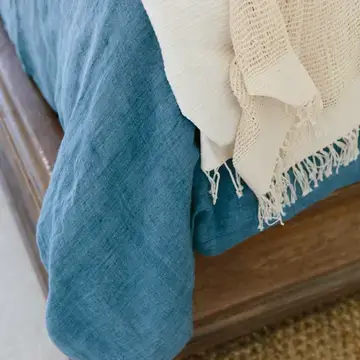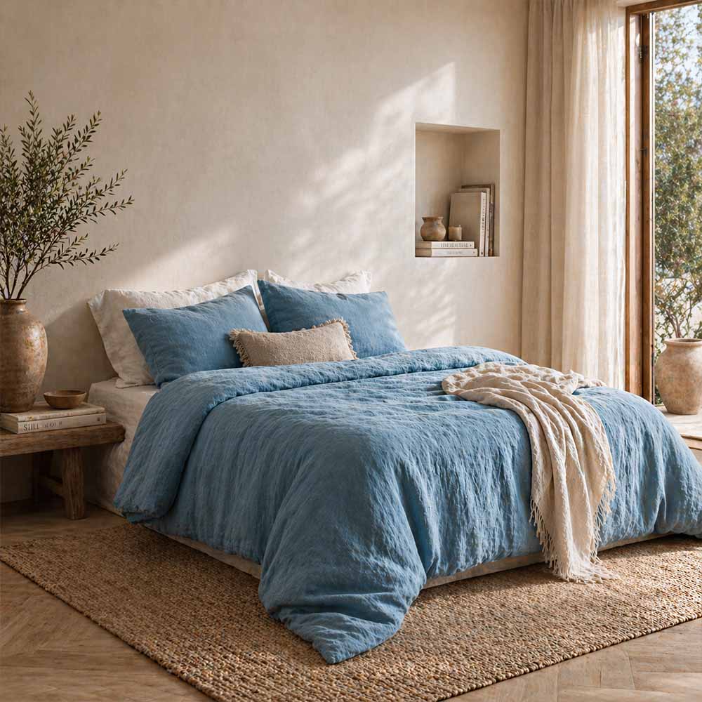 Sleeping under our Denim Linen Duvet Cover Set feels amazing. The soft, breathable fabric rests gently on your skin and helps you relax and drift off. Linen keeps you cool in summer and warm in winter, so you stay comfy all year long.