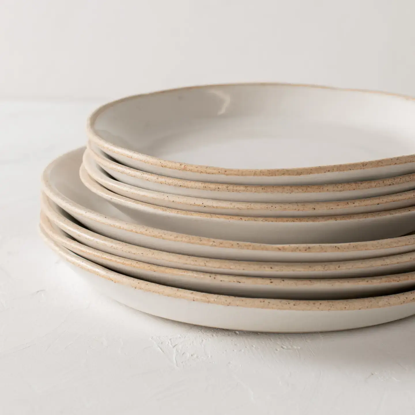 These Minimal Plates, a stylish addition to the Convivial Minimal Dinnerware Collection. These plates are perfect for everyday dining. Each piece is meticulously handmade using our proprietary sand stoneware and finished with our signature ivory glaze.