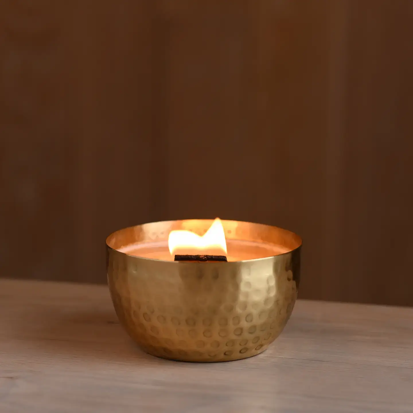 Our Solid Brass 14oz Pure Soy Candle, a luxurious addition to any home. Each solid brass bowl is hand drummed, making it a stunning piece of art that can be displayed long after the candle has burned.