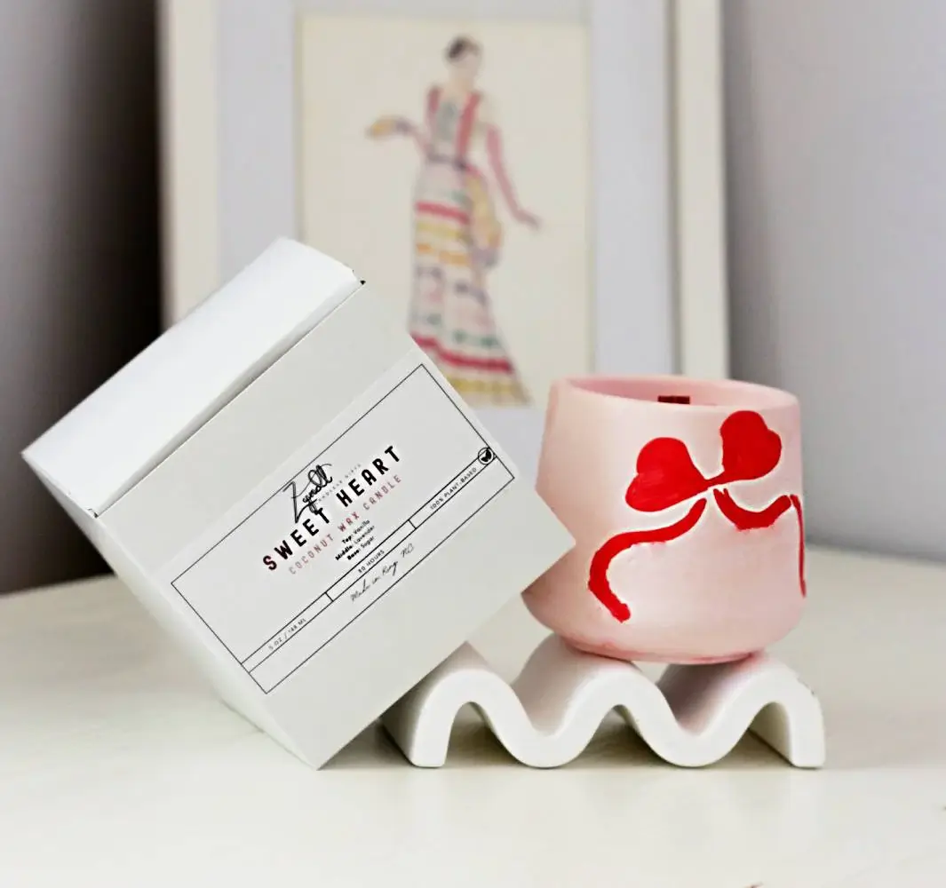 Add a touch of charm to your space with the Sweet Heart Red Bow Candle, lovingly handcrafted to bring warmth and elegance to your home.